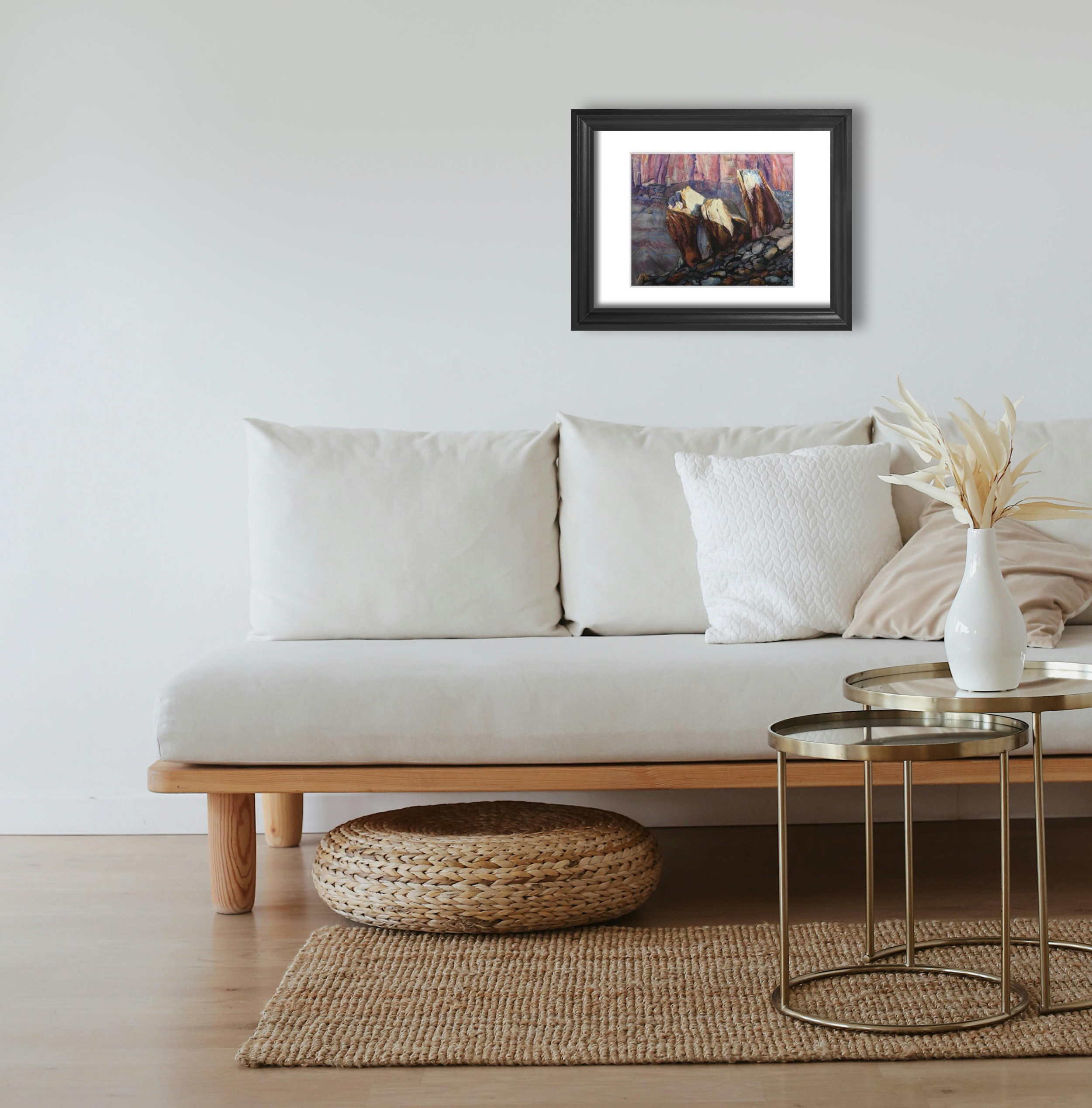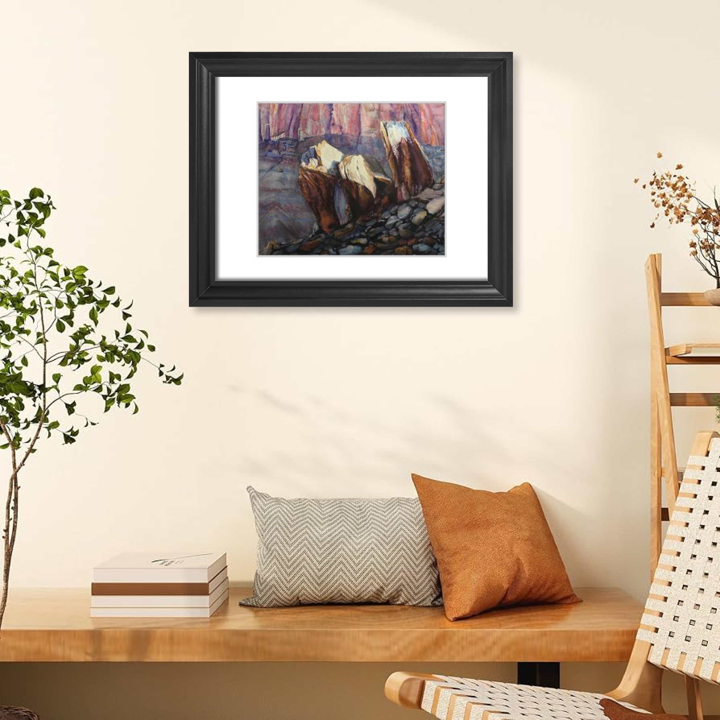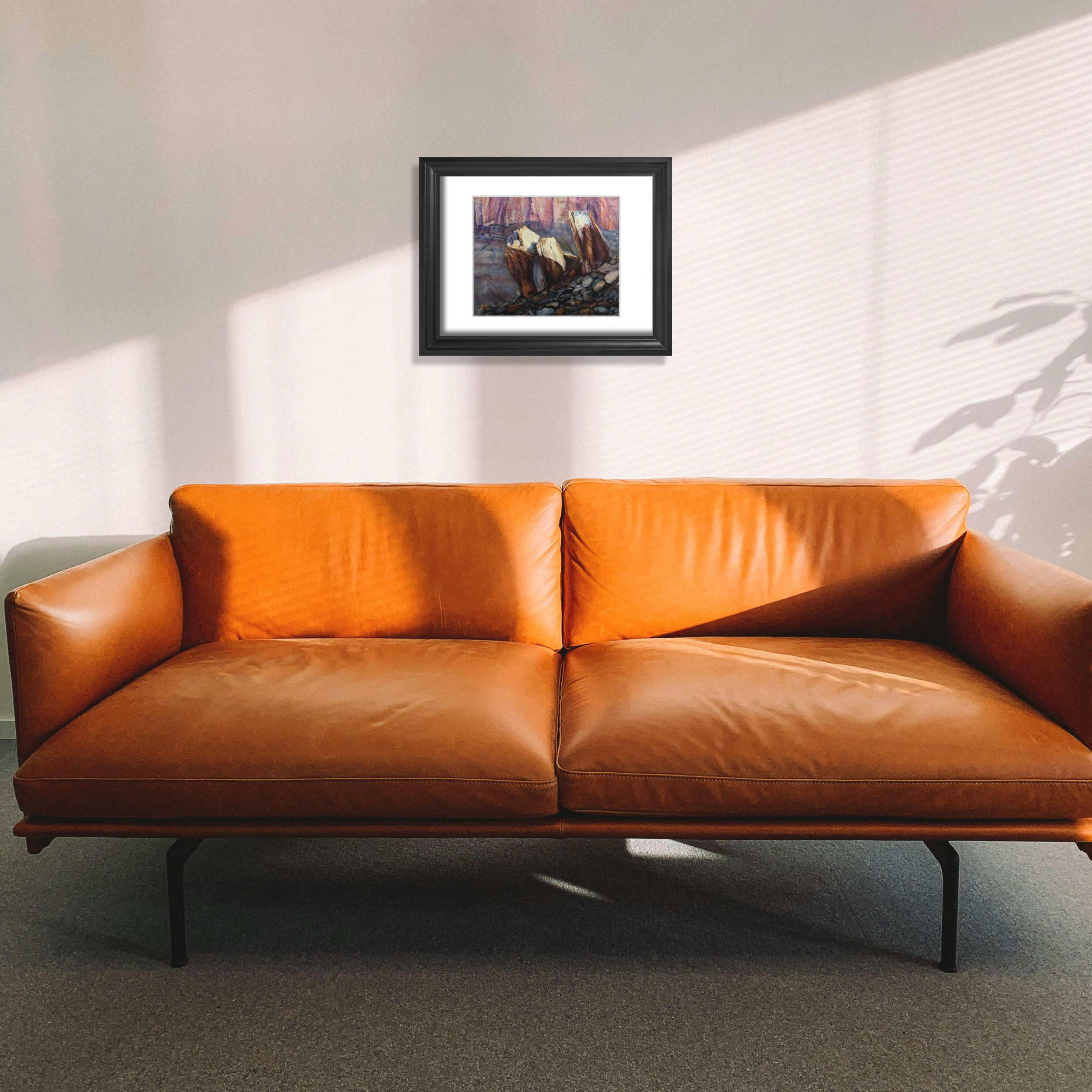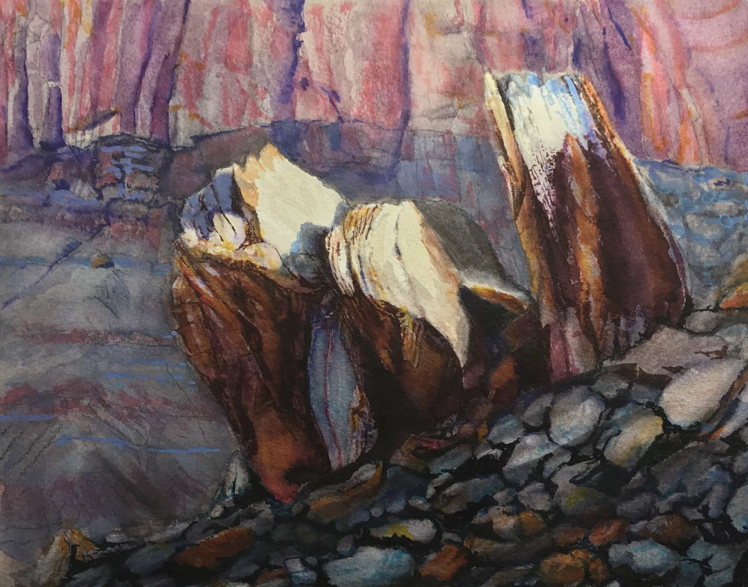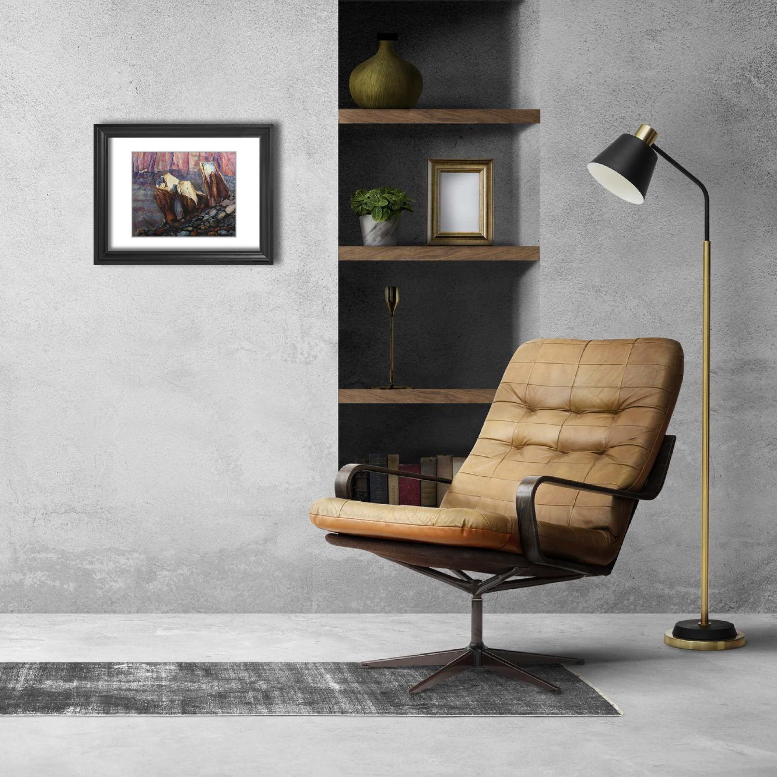 This painting captures three sunlit boulders nestled against the vibrant cliffs near the historic Fruita Schoolhouse in Capitol Reef. The morning light dances across their surfaces, accentuating their rich colors and textures. I was drawn to the way the shadows and highlights played together, revealing the subtle beauty of this quiet moment.