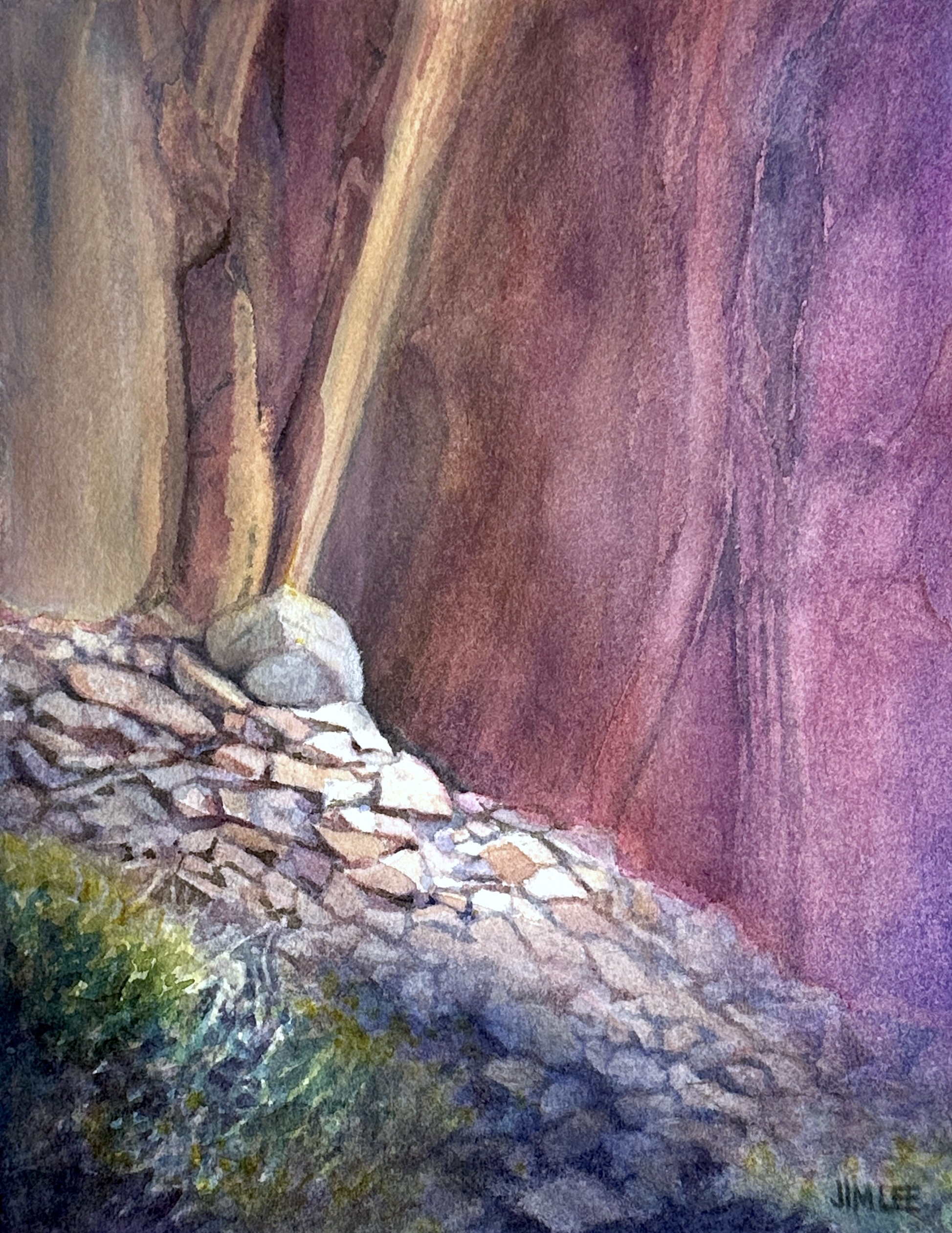 In my painting, Light Strikes captures the stunning beauty of Capitol Reef, Utah. I focused on the dramatic interplay of sunlight and shadow across the rugged cliffs and vibrant rock formations. The warm colors of the setting sun create a breathtaking contrast against the deep blue sky, bringing the landscape to life. It’s a moment that feels both serene and powerful, showcasing nature’s incredible artistry.